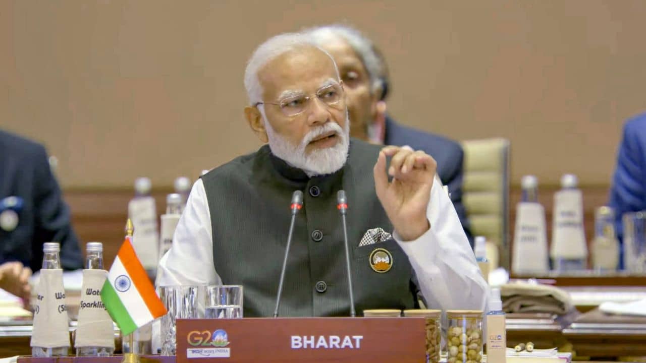 নয়া দিল্লি: রাষ্ট্রপতির দেওয়া আমন্ত্রণপত্রে কেন ‘ইন্ডিয়া’র বদলে ‘ভারত’ লেখা হল, তা নিয়েই জল্পনার সূত্রপাত। এবার জি ২০ শীর্ষ সম্মেলনের শুরুতেই আরও একধাপ এগোল ভারত। প্রধানমন্ত্রী নরেন্দ্র মোদী যখন রাষ্ট্রনেতাদের সামনে উদ্বোধনী ভাষণ পেশ করছেন, তখন সবার নজর কাড়ল তাঁর সামনে থাকা নেম প্লেট। খয়েরি রঙের ওপর সাদা অক্ষরে লেখা ‘ভারত’। আন্তর্জাতিক মঞ্চে ভারতকে ইন্ডিয়া বলেই উল্লেখ করা হয় বেশিরভাগ ক্ষেত্রে। সেখানে জি-২০ সদস্য দেশগুলির প্রতিনিধিদের সামনে ‘ভারত’ নামটিকেই কেন অগ্রাধিকার দেওয়া হল? প্রশ্ন উঠছে, নাম বদলের সম্ভাবনা কি তবে জোরাল হচ্ছে?