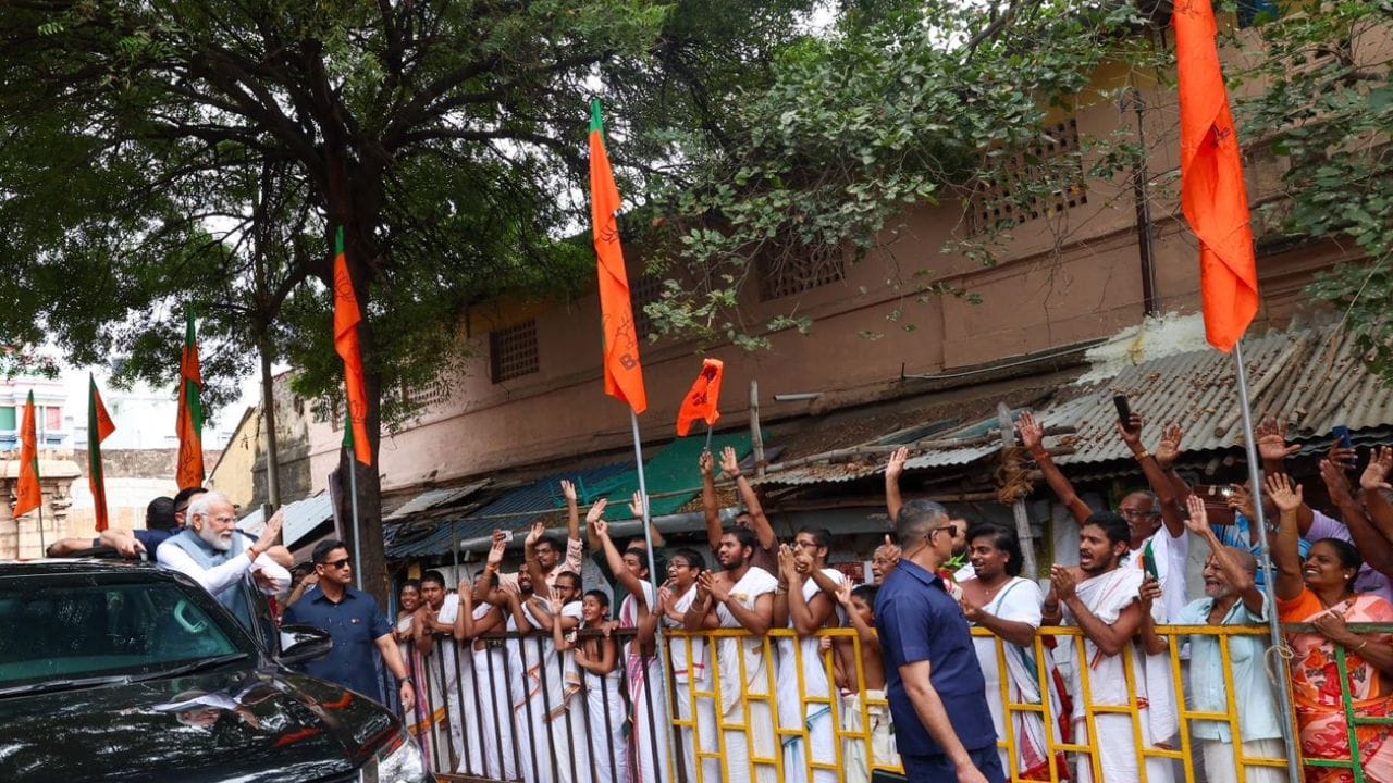 #WATCH | Prime Minister Narendra Modi conducts a roadshow in Rameswaram, Tamil Nadu. pic.twitter.com/NhYf6iydPe