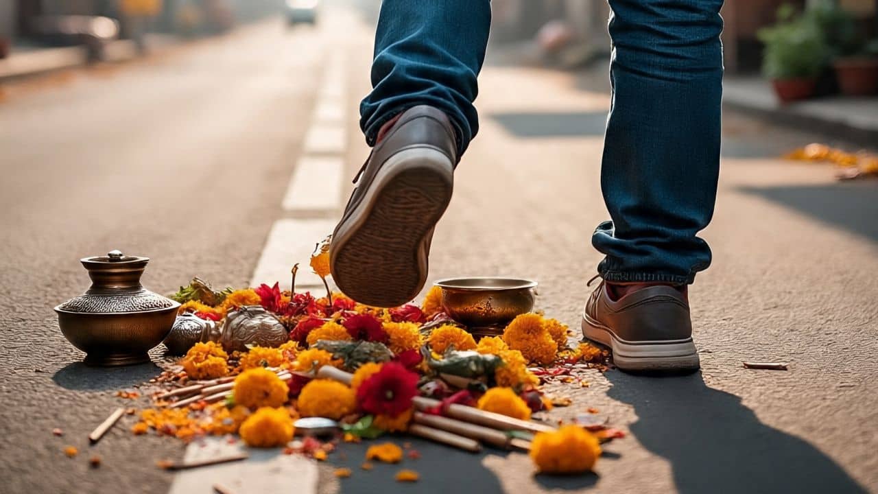 বাস্তুশাস্ত্র অনুযায়ী রাস্তায় পড়ে থাকা পুজোর সামগ্রীতে পা দেওয়া অশুভ বলে বিবেচিত হয়। যদিও এটি সরাসরি বাস্তুর মূল নীতির অংশ নয়। এটা মূলত ধর্মীয় বিশ্বাসের সঙ্গে জড়িয়ে। বাস্তুশাস্ত্রের দৃষ্টিভঙ্গি থেকে যদি দেখা হয়, তা হলে বলা হয় রাস্তায় পড়ে থাকা পুজোর সামগ্রীতে পা দেওয়া উচিত নয়, তা হলে নেগেটিভ এনার্জি আকৃষ্ট হয়। পুজোর সামগ্রী একধরনের শক্তি বহন করে। যার ফলে সেটি যদি রাস্তায় পড়ে থাকে, তা স্পর্শ করলে সেই নেতিবাচক শক্তি শরীরে বা বাড়িতে প্রবেশ করতে পারে।
