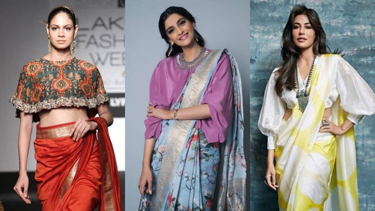 আপনি অবশ্যই জিন্স, স্কার্ট ইত্যাদির উপরে টার্টল নেক ক্রপ টপ পরেছেন, এখন আপনি এই টপগুলিকে শাড়ির সঙ্গে মিলিয়ে পরার চেষ্টা করুন। আপনি একটি সাধারণ টপের সঙ্গে একটি প্রিন্টেড শাড়ি মিলিয়ে পরতে পারেন। আপনি স্লিভলেস যে কোনও টপ বেছে নিতে পারেন। ভি নেক টি-শার্টের সঙ্গেও শাড়ি পরা যায়।