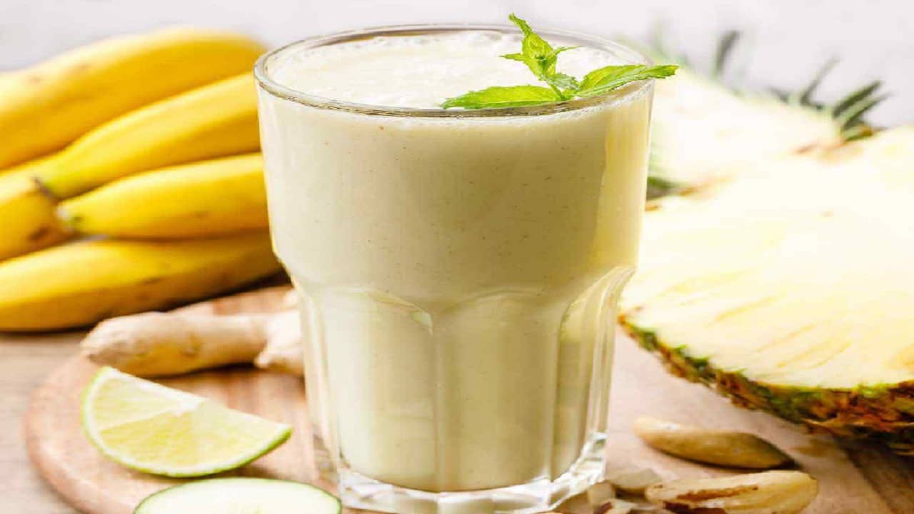 এককাপ কলা, কিউই, আনারস, আপেল, আমন্ড বাটার, খেজুর, চিয়া সিডস আর টকদই দিয়ে ভাল করে ব্লেন্ড করে নিন। এবার তা ছেঁকে নিয়ে খান। এই ড্রিংকে শরীর ঠান্জা থাকবে। তবে একেবারে খালি পেটে কিন্তু খাবেন না।