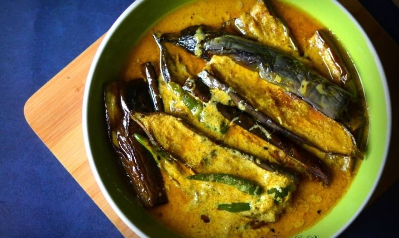 ৫ লম্বা করে কাটা বেগুন, পোস্ত বাটা ২ টেবিল চামচ, সাদা সরষে, কালো সরষে বাটা ২ টেবিল চামচ, নারকেল বাটা ২ টেবিল চামচ, লঙ্কা বাটা ১ চা চামচ, সরষের তেল এক কাপ, কালোজিরে ১ চা চামচ, শুকনো লঙ্কা দুটো তিনটে
