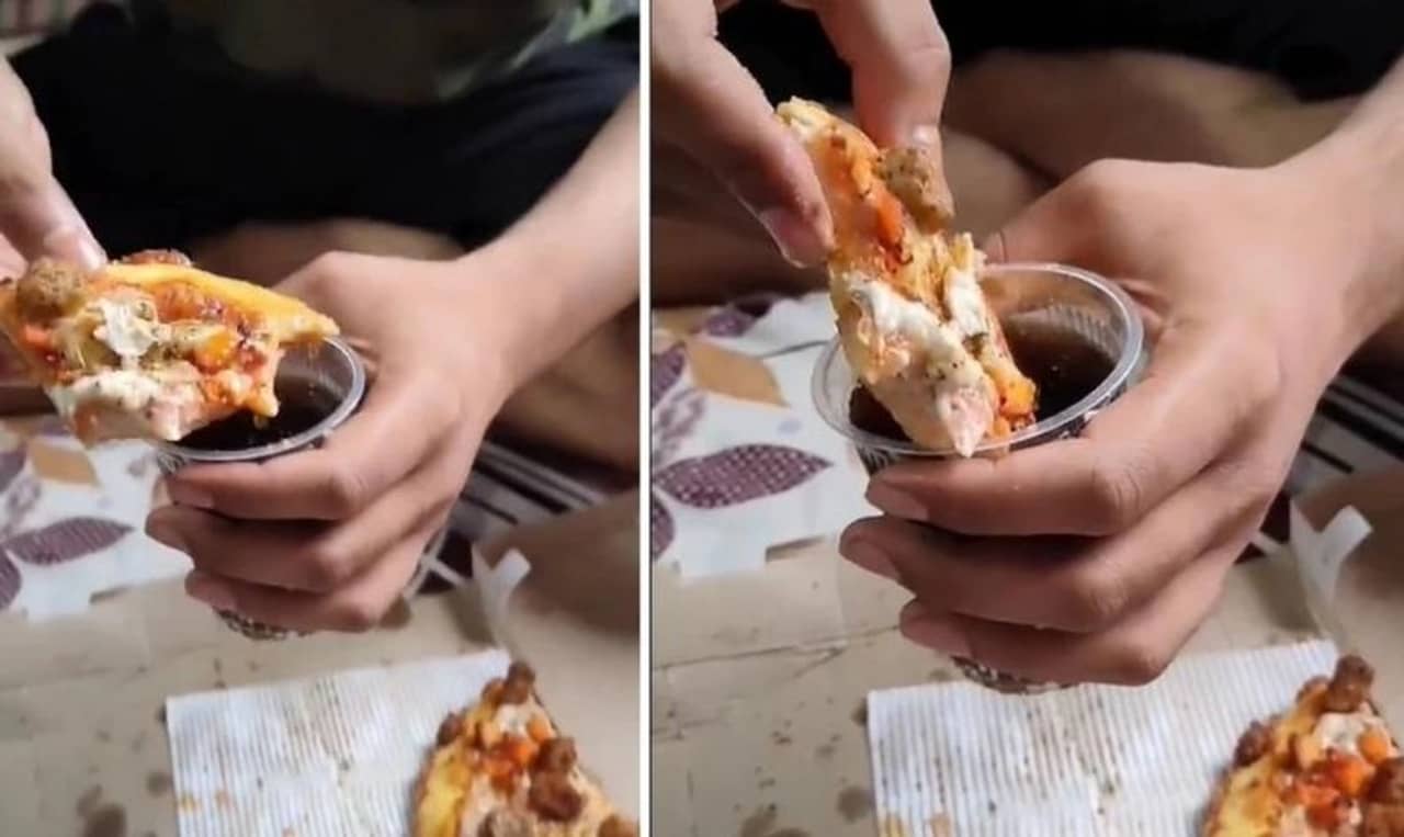সম্প্রতি একটি ভিডিয়ো ইন্টারনেটে ভাইরাল হয়ে গিয়েছে। সেই ভিডিয়োতে দেখা গিয়েছে, ঠান্ডা পানীয়ের গ্লাসের মধ্যে পিত্জার টুকরো ডুবিয়ে খেতে ব্যস্ত এক যুবক!