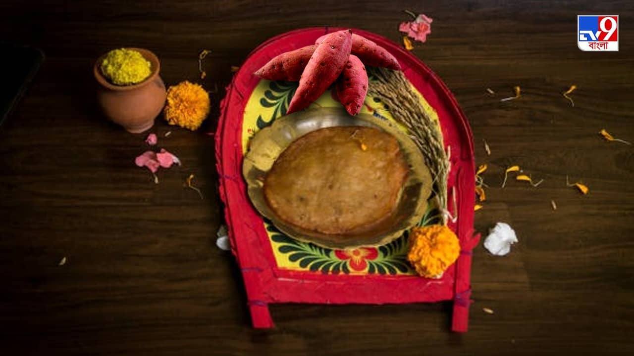 তিনটে বড় রাঙাআলু খোসা সহ সেদ্ধ করে নিতে হবে চারটে সিটি দিয়ে। এবার এর খোসা ছাড়িয়ে গ্রেটারে ভাল করে গ্রেট করে নিতে হবে।