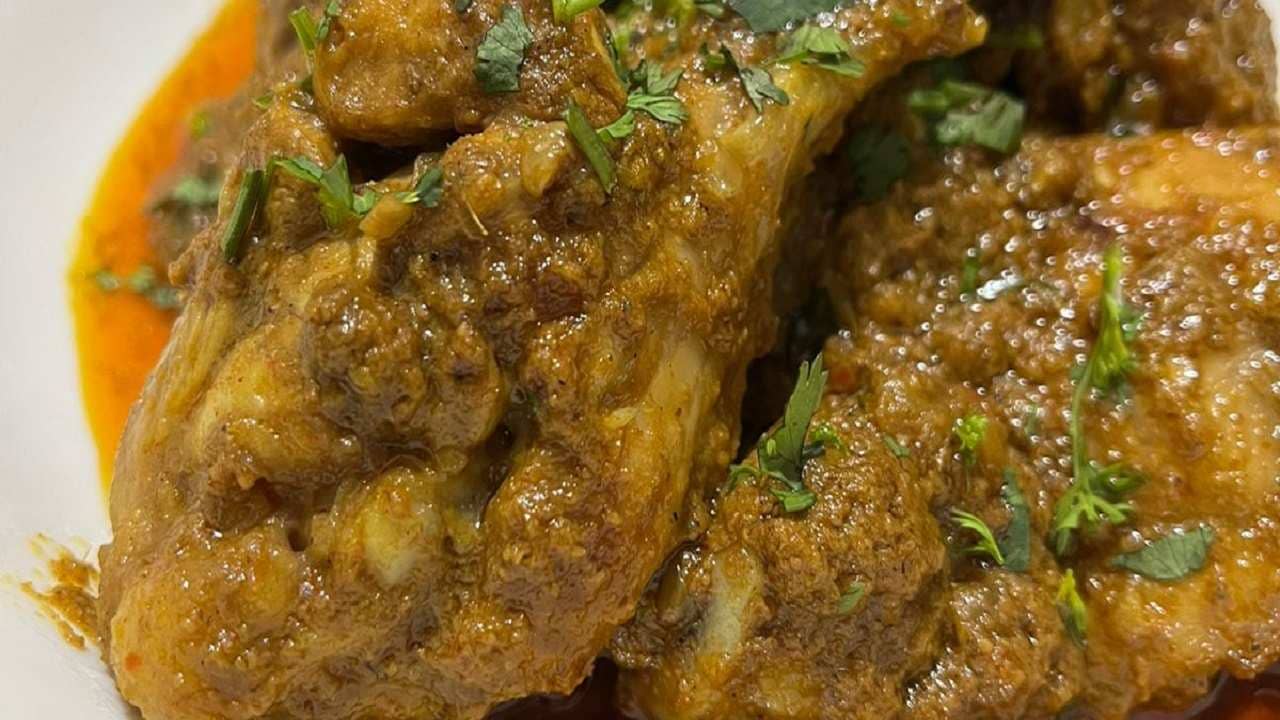 যেভাবে বানাবেন- শুকনো প্যানে প্রথমে শুকনো লঙ্কা, জিরে, এলাচ, লবঙ্গ, গোলমরিচ, দারচিনি, বড় এলাচ, জয়িত্রী, পোস্ত, কাজু বাদাম, নারকেল পাউডার সব একসঙ্গে ভাল করে নাড়ুন। গন্ধ না বেরনো পর্যন্ত নাড়তে থাকুন। এবার এর মধ্যে গোটা রসুন, আদা, সাদা তিল আর স্বাদমতো নুন দিয়ে নেড়ে নিন। এবার ব্লেন্ডারে সব কিছু ড্রাই রোস্ট করুন। আবার দু চামচ জল দিয়ে ব্লেন্ড করুন। এবার এর মধ্যে বড় টুকরো করে কাটা টমেটো দিয়ে আবারও ব্লেন্ড করে নিন। এবার কড়াইতে তেল দিয়ে পেঁয়াজ নেড়ে নিন। এবার ওর মধ্যে ওই বাটা মশলা দিয়ে কষুন। কষতে কষতে লঙ্কা গুঁড়ো, হলুদ দিয়ে কষিয়ে তেল ছেড়ে এলে চিকেন দিন। লো ফ্লেমে ১৫ মিনিট রান্না করুন। নামানোর আগে ধনেপাতা কুচি আর জায়ফল গুঁড়ো ছড়িয়ে দিন। এই চিকেন বেশ শুকনো হয় আর স্বাদও কিন্তু একেবারে অন্যরকম হয়।