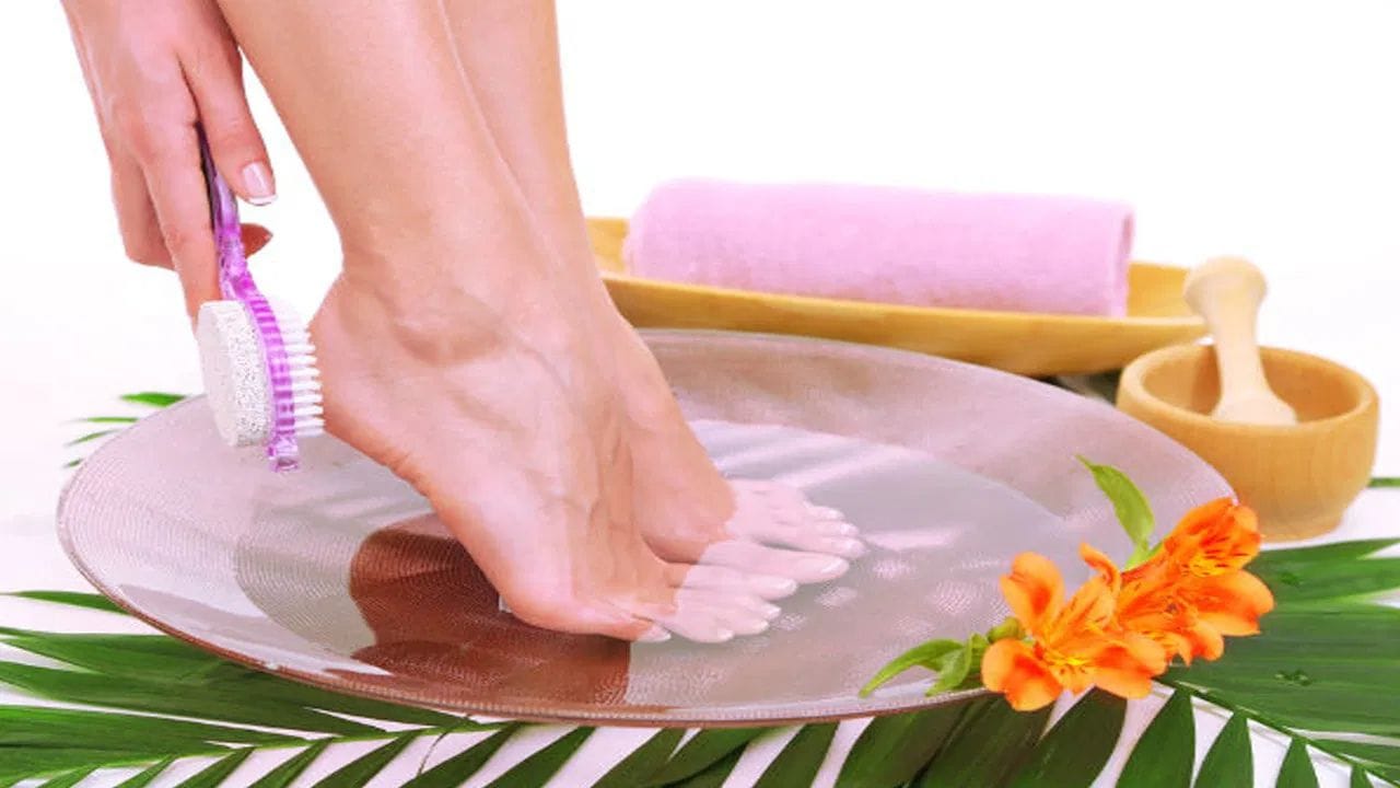 ৫. ইষদুষ্ণ জলে পা ডুবিয়ে রাখা বাইরে থেকে ফিরে ইষদুষ্ণ জলে কিছুক্ষণ পা ডুবিয়ে রাখুন। জলে লেবুর রস ও বেকিং সোডা মিশিয়ে নিলে পায়ের ট্যান দূর হবে এবং নখের কোণে জমে থাকা ময়লা পরিষ্কার হবে।