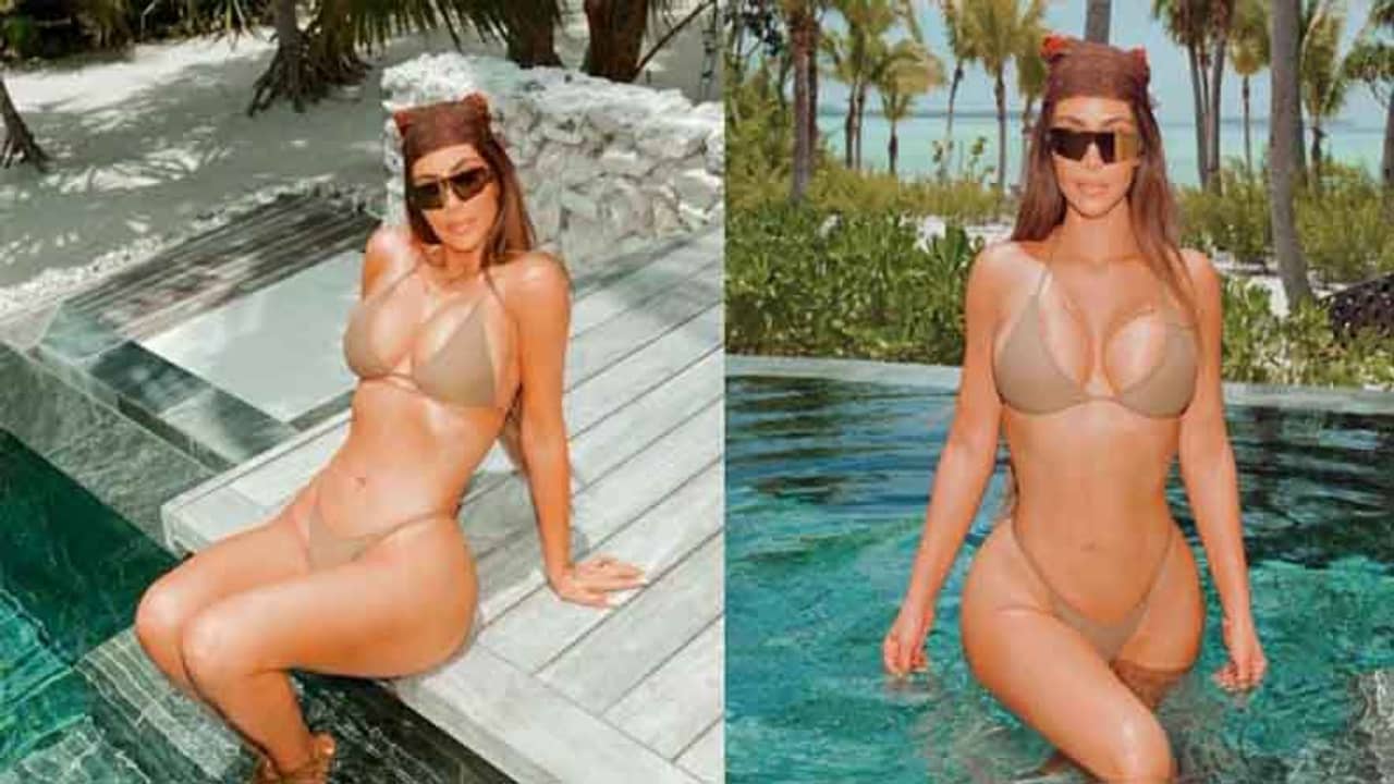 ইনস্টাগ্রামে কিম সদ্যই যে ছবি শেয়ার করেছেন সেখানে দেখা গিয়েছে, মার্কিন তারকার পরনে রয়েছে বেজ কালারের বিকিনি। চোখে স্টাইলিশ ব্ল্যাক সানগ্লাস। আর মাথায় একটি ব্যান্ডানা। স্কার্ফের মতো দেখতে ওই ব্যান্ডানার প্রিন্টও চমৎকার। সব মিলিয়ে সামার ভ্যাকেশনে বোল্ড বিকিনি লুকে তৈরি কিম কার্দাশিয়ান। এবছর সামার ফ্যাশনেও কিমের এই বিকিনি লুক যে ট্রেন্ড তৈরি করবে, তেমনটাই বলছেন ফ্যাশন এবং স্টাইল বিশেষজ্ঞরা।