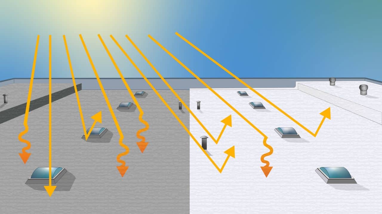 এই কৌশলে বিশেষ উপকরণ ব্যবহার করা হয় যা সূর্যের আলোতে উপস্থিত অতিবেগুনী (UV) রশ্মিকেও প্রতিফলিত করে। এই ধরনের ছাদ তাপ প্রতিফলিত করতে অত্যন্ত দক্ষ। যেটুকু তাপ শোষণ করে তাও দ্রুত বায়ুমণ্ডলে ছেড়ে দেয়। ফলে সাধারণ ছাদের তুলনায় কম থাকে তাপমাত্রা।