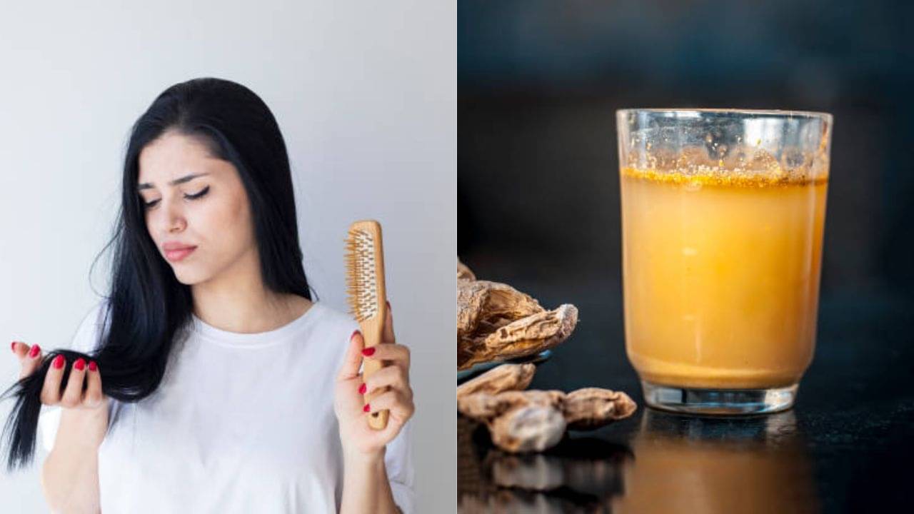 এই আয়ুর্বেদিক পানীয় তৈরি হয় কারি পাতা, আদা ও আমলকি দিয়ে। কারি পাতার মধ্যে ভিটামিন এ, বি ও সি, ক্যালশিয়াম, আয়রনের মতো উপাদান রয়েছে। এগুলো চুলের ফলিকল মজবুত করে এবং চুল পড়া কমায়। আদার মধ্যে অ্যান্টি-ইনফ্লেমেটরি উপাদান রয়েছে। এই উপাদান স্ক্যাল্পে রক্ত সঞ্চালন বৃদ্ধি করে এবং চুলের ফলিকলকে মজবুত করে। এই উপাদানের মধ্যেও এসেনশিয়াল অয়েল, ভিটামিন ও মিনারেল রয়েছে, যা চুলের বৃদ্ধি এবং খুশকি দূর করতে সাহায্য করে। আমলকির মধ্যে ভিটামিন সি ও অ্যান্টিঅক্সিডেন্ট রয়েছে, যা স্ক্যাল্প ও চুলের স্বাস্থ্য উন্নত করতে সাহায্য করে। এটি চুলের অকাল পক্কতা দূর করে এবং চুল পড়া কমায়।