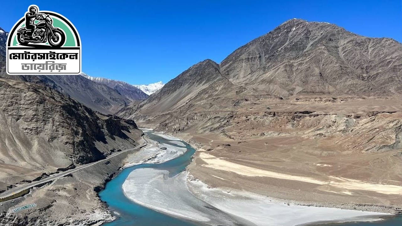 আমরা কিছুক্ষণ দাঁড়ালাম। সত্যিই বলতে দাঁড়াতে হল। চোখের সামনে পাহাড়ের রূপ দেখে থমকে গেলাম। চারিদিকের ধূসর পাহাড়ে ঘেরা মাটির রঙে পিঁপড়ের ঢিপির আকারে ছোট-বড় টিলা। দেখে মনে হয় কোনও প্রাচীন সভ্যতার ধংসাবশেষ। মাঝেমধ্যে ঘন সবুজ রঙের গাছ-গাছালি। আরও সামনের দিকে পাথুরে মাটির তৈরি প্রায় একই ধাঁচের কাঁচা ইটের বাড়ি। অধিকাংশই সাদা রংয়ের। দরজা-জানালায়, ছাদের বাইরের দিকে সুদৃশ কাঠের নকশা করা। গ্রামে ঢোকার রাস্তায় ওপরের দিকে লামায়ূরু গুম্ফা গ্রামের মাথায় মুকুটের মতো শোভা বাড়াচ্ছে। সঙ্গে ছোট-ছোট বৌদ্ধস্তূপাগুলো জায়গাটাকে বেশ পরিপাটি করে তুলেছে। বেরনোর পথে বাড়ির পাশের বাগানে এপ্রিকটের কিছু গাছ চোখে পড়ল। এই সবেমাত্র ফল ধরেছে গাছগুলোয়। কিছু দূর যেতেই গাছপালা আবার উধাও। রাস্তার বাঁকে-বাঁকে পাল্টে যাচ্ছে ভুমিরূপ। এ যেন অন্য কোনও গ্রহে এসে পড়লাম আমরা। জ্যোৎস্না রাতে বোধহয় স্বর্গ নামে এখানে। চাঁদের মাটির সাদৃশ্যে লামায়ূরুর এই জায়গা ‘মুনল্যান্ড’ নামে পরিচিত। কয়েকটা বাঁক নিয়ে ঢাল বেয়ে নীচে নেমে এলাম। শেষের মোড়টা ঘুরতেই সাক্ষাৎ হল সিন্ধু নদের সঙ্গে। তার অবশ্য গন্তব্য আমাদের উল্টো দিকে। আয়রন ব্রিজ পেরিয়ে এসে পৌঁছলাম খালসি। কার্গিল থেকে বাতালিক হয়ে আর একটি রাস্তা এই খালসি গ্রামে যোগ হয়েছে। খালসি পুলিশ চৌকি পেরিয়ে এগিয়ে চললাম নিমুর দিকে। নিমুর ঠিক একটু পরেই জায়গাটার নাম সঙ্গম।