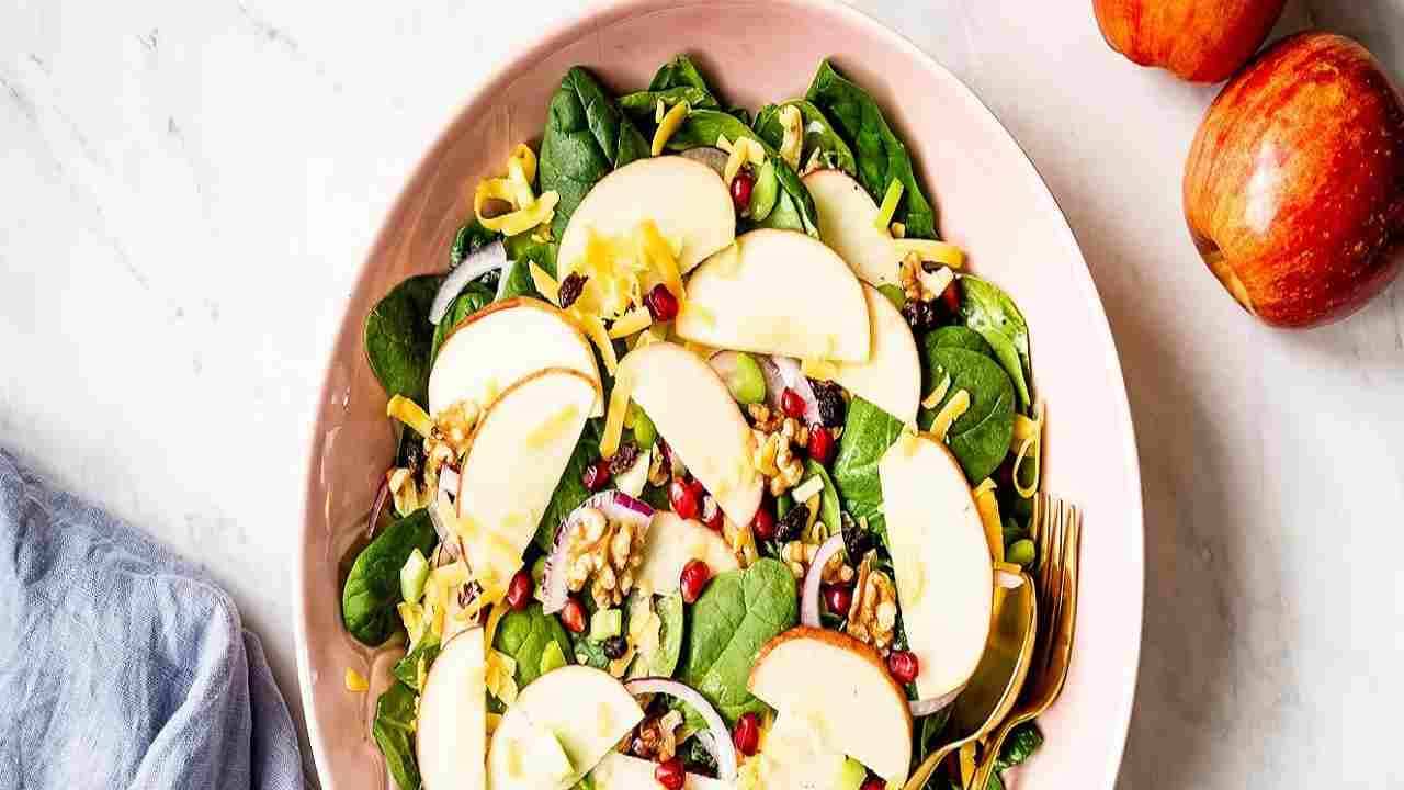 গ্রিন অ্যাপেল স্যালাড- গ্রিন আপেল স্লাইস করে নিন। এবার সামান্য অলিউ অয়েল ছড়িয়ে পেঁয়াজের স্লাইস, ধনেপাতা, স্বাদমতো নুন, লঙ্কাগুঁড়ো, গোলমরিচ গুঁড়ো ছড়িয়ে দিন। ওর মধ্যে আপেলের টুকরো দিয়ে নেড়ে নিন। নামানোর আগে মধু আর স্প্রিং অনিয়ন ছড়িয়ে দিন