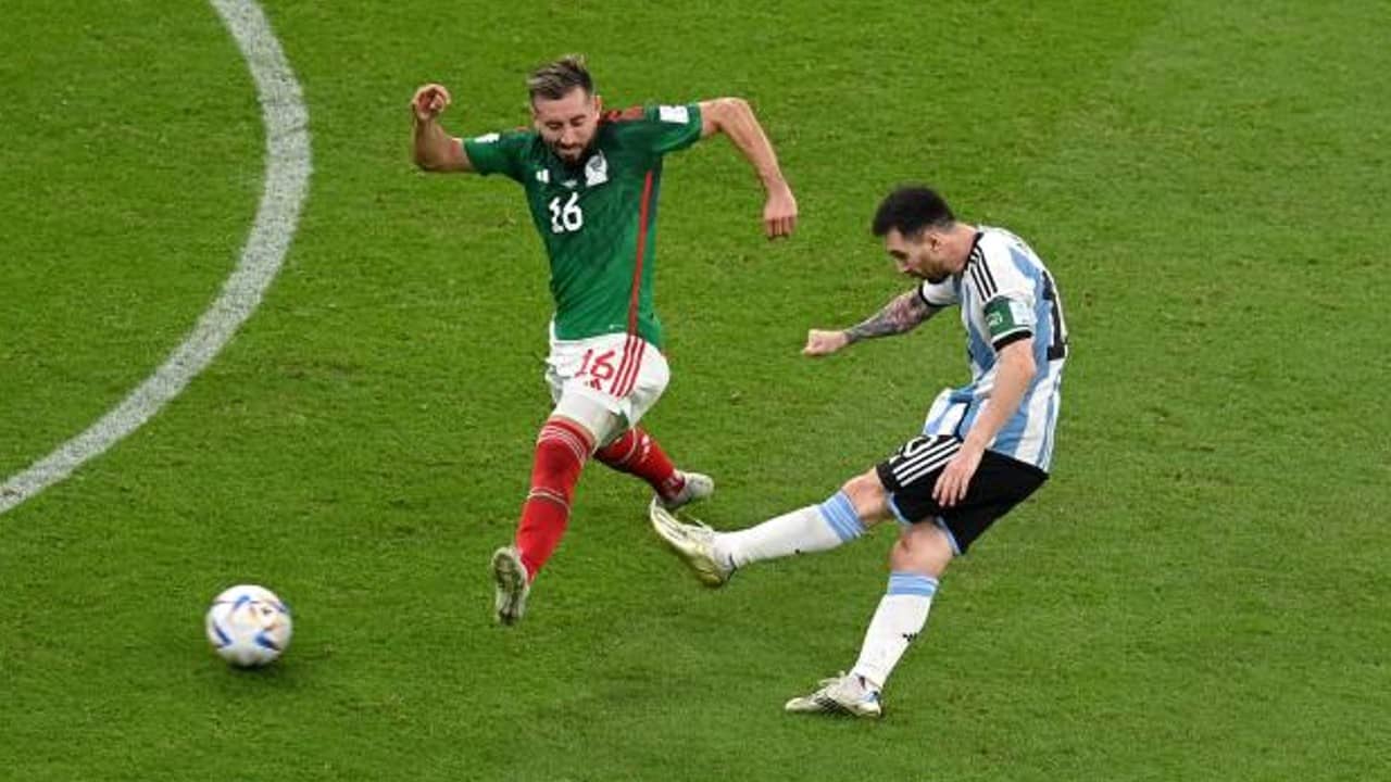 মেক্সিকোর বিরুদ্ধে মরণ বাঁচন ম্যাচ। গোলরক্ষক গিলেরমো ওচোয়াকে বোকা বানিয়ে ৬৪ মিনিটে বক্সের বাইরে থেকে জোরালো শটে গোল করেন লিওনেল মেসি। চলতি বিশ্বকাপে মেসির অন্যতম সেরা গোল বললে অত্যুক্তি করা হবে না।(ছবি:টুইটার)