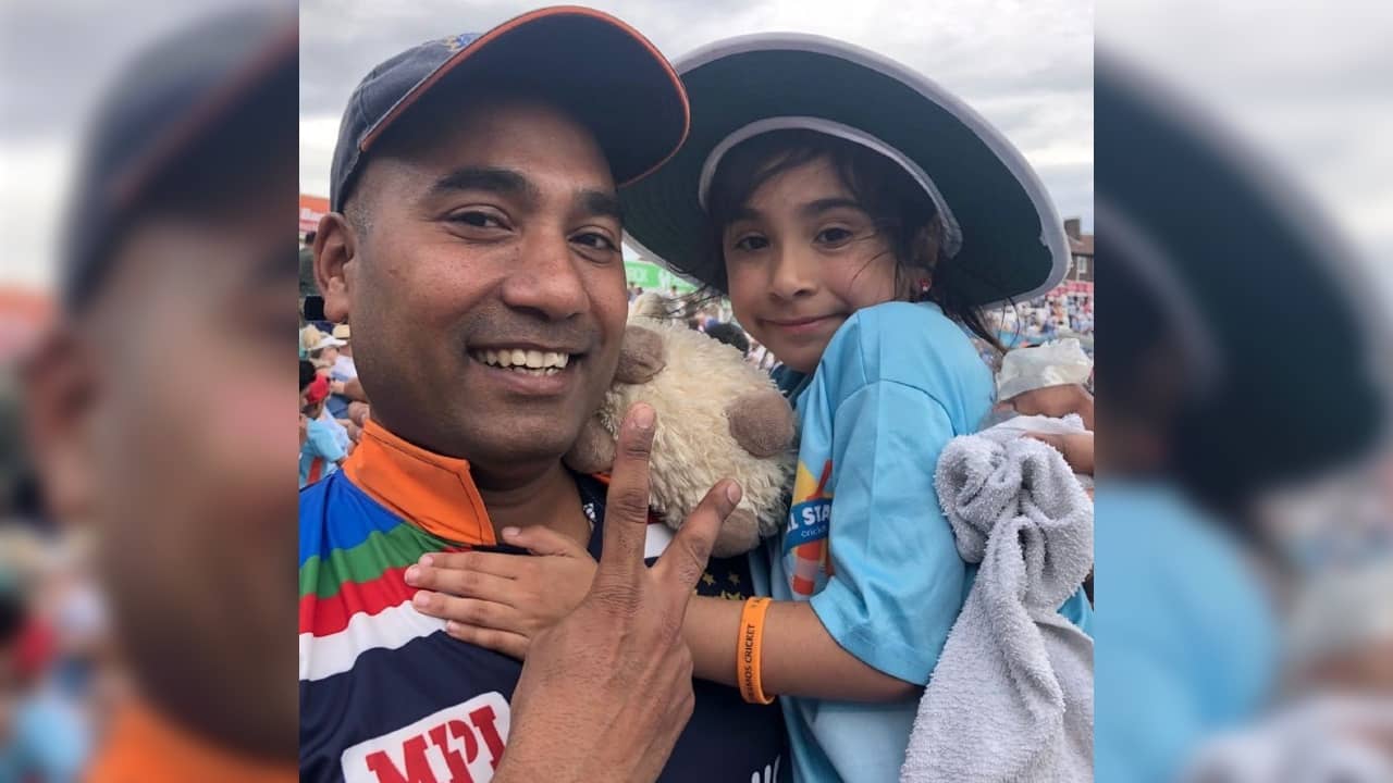 বাবা জিগনেশ সালভির সঙ্গে ইন্দো-ইংল্যান্ড দ্বৈরথ দেখতে গিয়েছিল খুদে মীরা। তার বাবা জানান, মীরা সাহসী মেয়ে। এই ঘটনায় ও ভয় পায়নি। মীরা স্বপ্ন দেখে ক্রিকেটার হওয়ার। (ছবি-টুইটার)