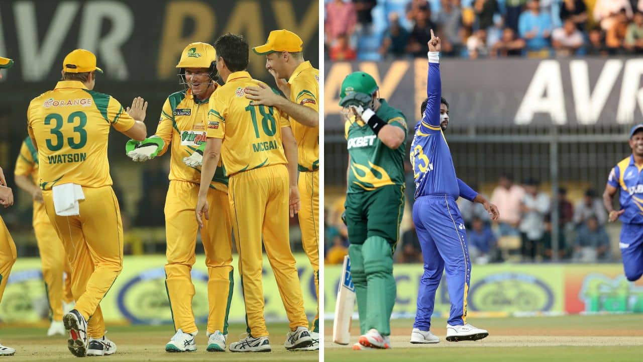বাংলাদেশের বিরুদ্ধে টসে জিতে ফিল্ডিংয়ের সিদ্ধান্ত নেয় অস্ট্রেলিয়া লেজেন্ডসের অধিনায়ক শেন ওয়াটসন। নিয়মিত ব্যবধানে উইকেট হারাতে থাকে বাংলাদেশ। সর্বাধিক রান ইলিয়াস সানির। ২৯ বলে ৩২ করেন তিনি। (ছবি : টুইটার)