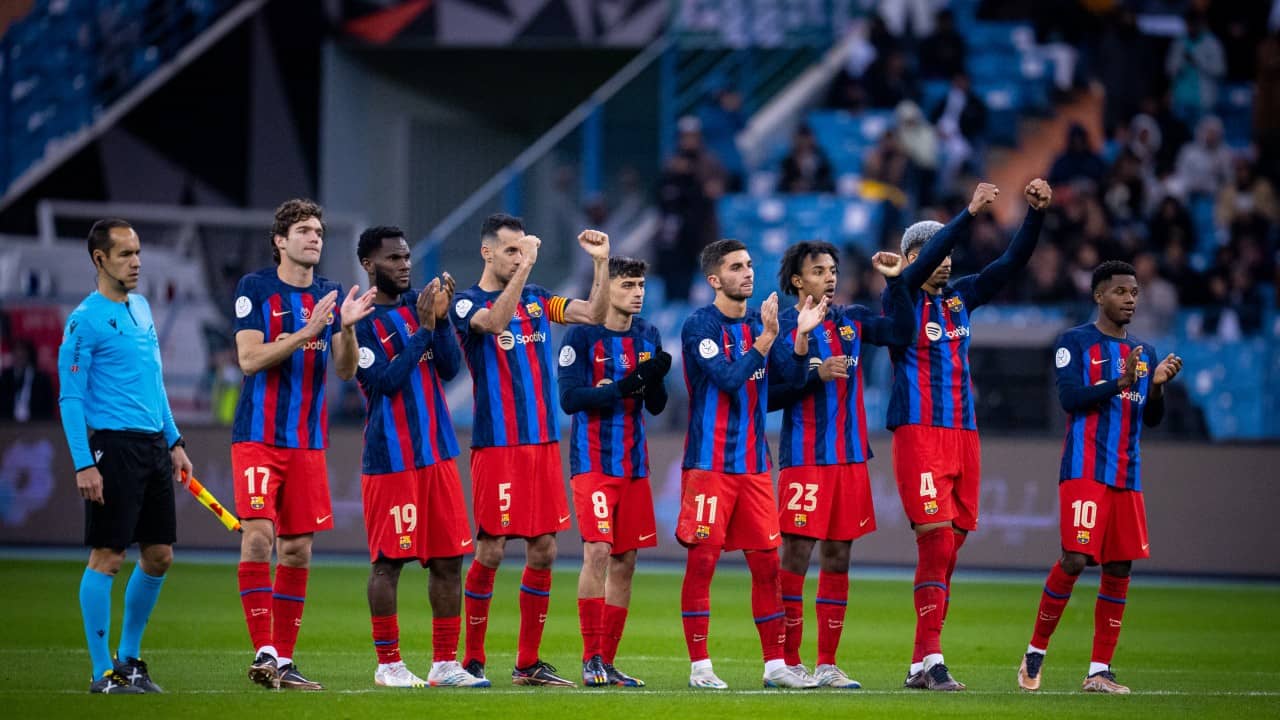 করিম বেঞ্জেমার রিয়াল মাদ্রিদের (Real Madrid) পর এ বার স্প্যানিশ সুপার কাপের (Spanish Super Cup) ফাইনালে পৌঁছে গেল বার্সেলোনা (Barcelona)। (ছবি-বার্সেলোনা টুইটার)