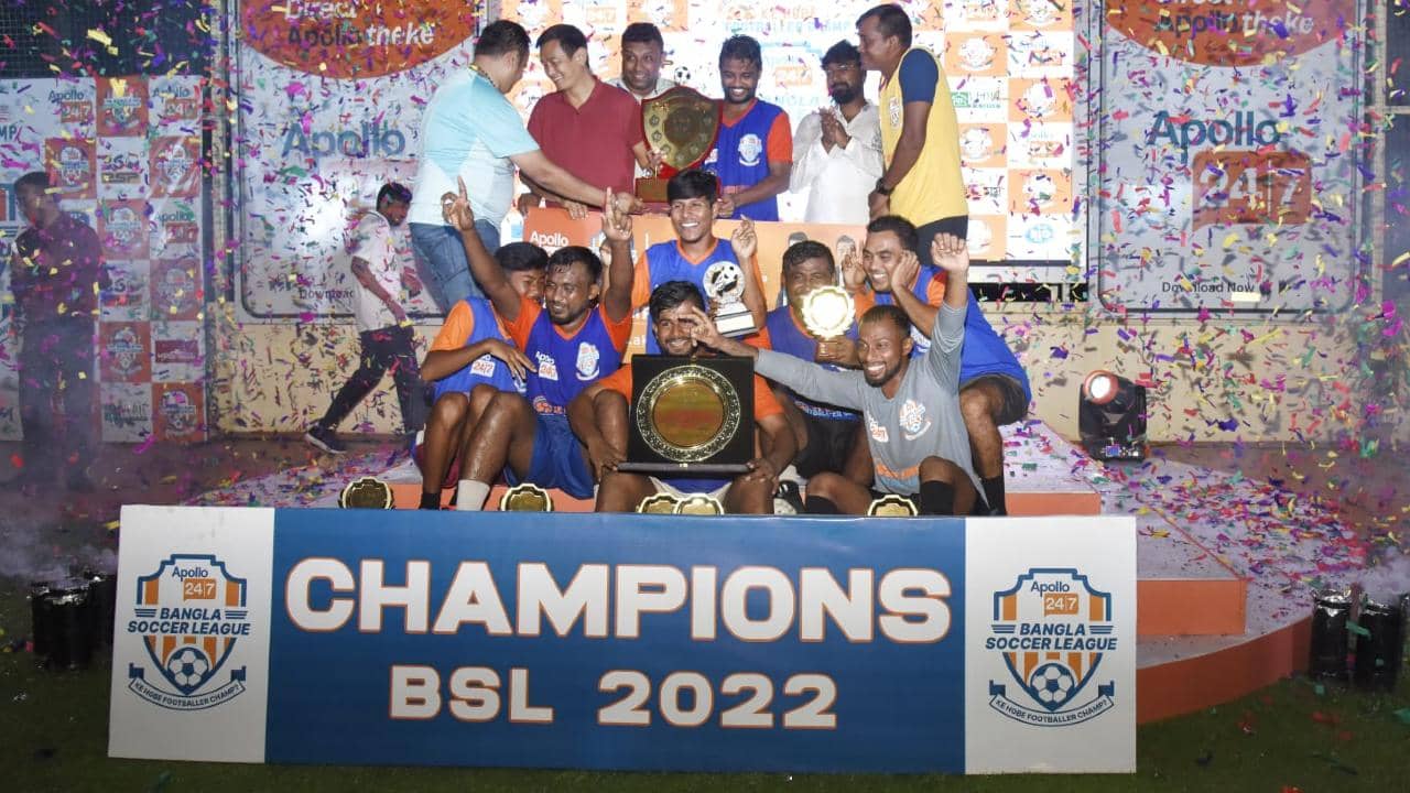 চ্যাম্পিয়ন দলের হাতে তুলে দেওয়া হয় ১ লক্ষ টাকা। রানার্স টিম পায় ২৫ হাজার টাকা। টুর্নামেন্টের সেরা ফুটবলার নির্বাচিত হলেন বিশ্বজিৎ সাহা। সবচেয়ে বেশি গোল করে সোনার বুট জিতলেন সাহিল সর্দার।(নিজস্ব চিত্র)
