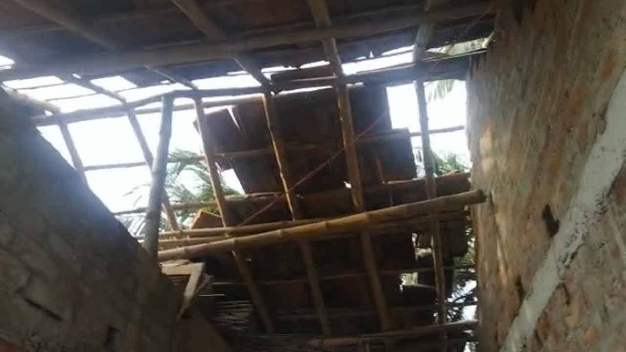 অনেকের বাড়ির ছাদ উড়ে গিয়েছে। গাছ নুইয়ে পড়েছে। বেড়ার দরমার বাড়িও ভেঙে পড়েছে অনেকের।