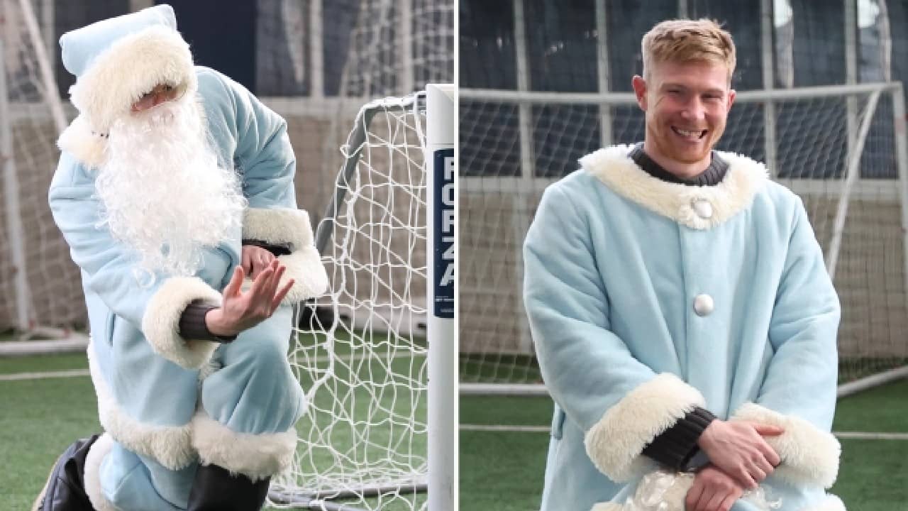 এ বার ম্যান সিটির এক তারকাকে দেখা গেল সান্তার বেশে। তিনি হাজির হলেন এক ঝাঁক খুদের কাছে তাদের সান্তা হয়ে। কথা হচ্ছে ম্যাঞ্চেস্টার সিটির তারকা কেভিন ডি ব্রুইনকে নিয়ে। তিনি ম্যান সিটির অভিযান, 'এ টাইম ফর গিভিং'-এ অংশ নিয়েছিলেন। (ছবি-টুইটার)