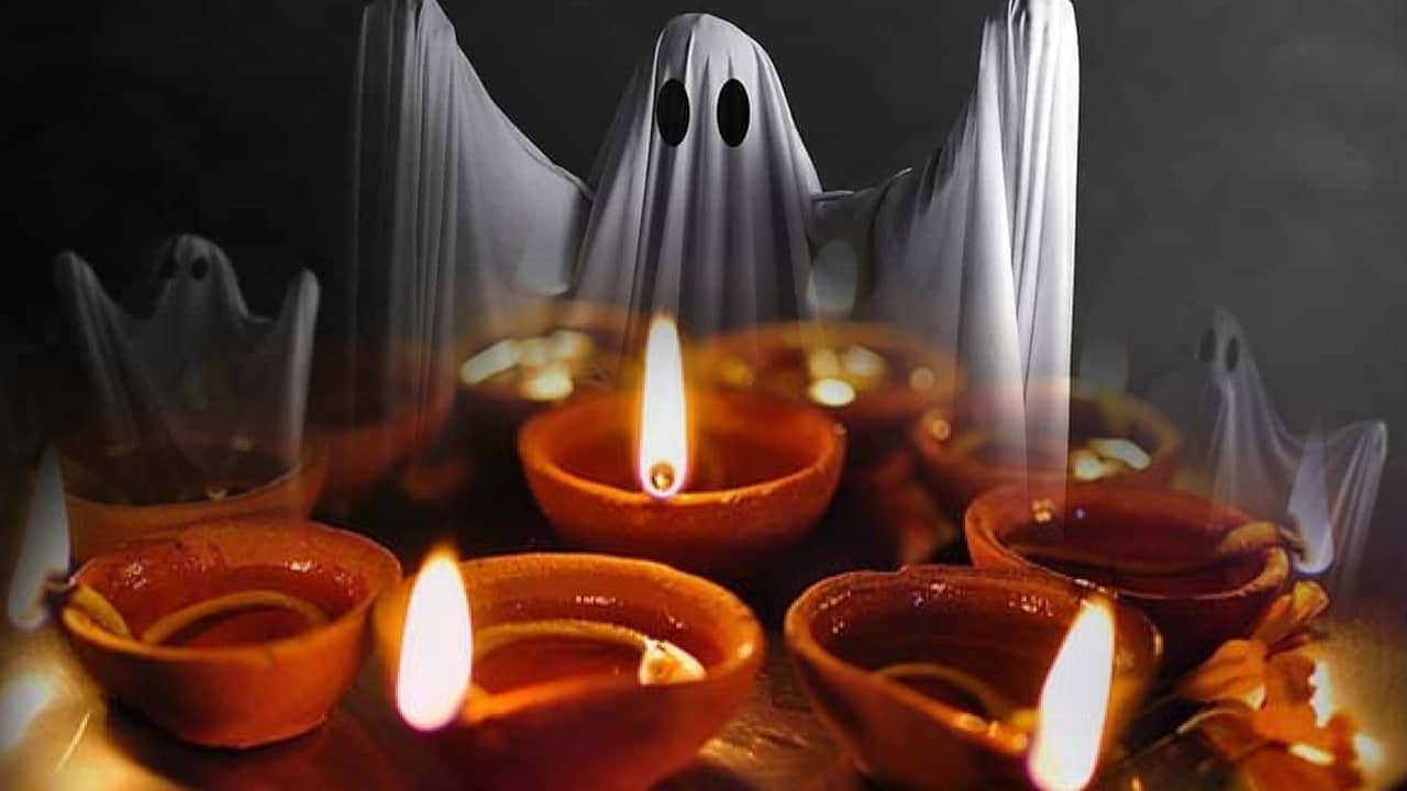 ভূত চতুর্দশীর দিন তেলের প্রদীপ জ্বালিয়ে যমদ্বীপ দান করার বিধান রয়েছে। বলিরাজার অশরীরী-আত্মা বা ১৪ পূর্বপুরুষের প্রেতাত্মা ছাড়াও এদিনের সঙ্গে রয়েছে ভৌতিক ব্যাপার-স্যাপারও রয়েছে।