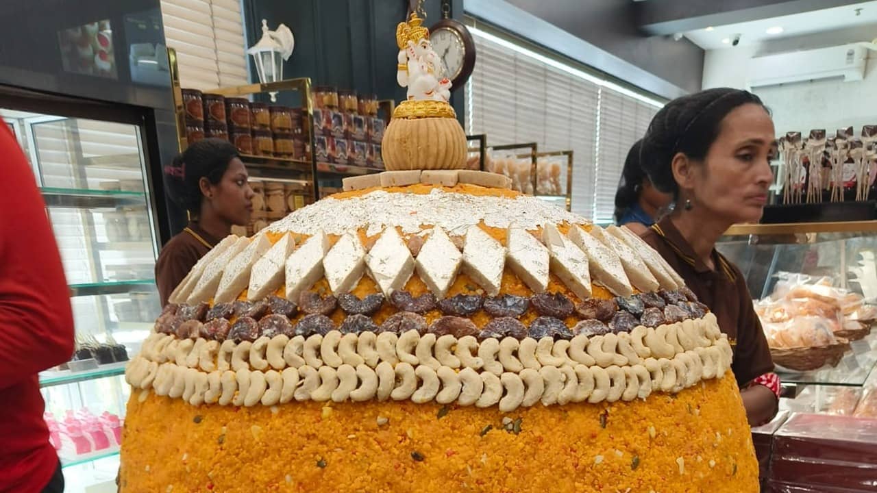 এত বড় লাড্ড কীভাবে তৈরি করা হয়েছে? ওই মিষ্টি দোকানের তরফে জানানো হয়েছে, লাড্ডু তৈরিতে ব্যবহার করা হয়েছে ৮ কিলো ড্রাই ফ্রুট। বিভিন্ন রকমের মোদক আছে। লাড্ডুও আছে নানা রকম।