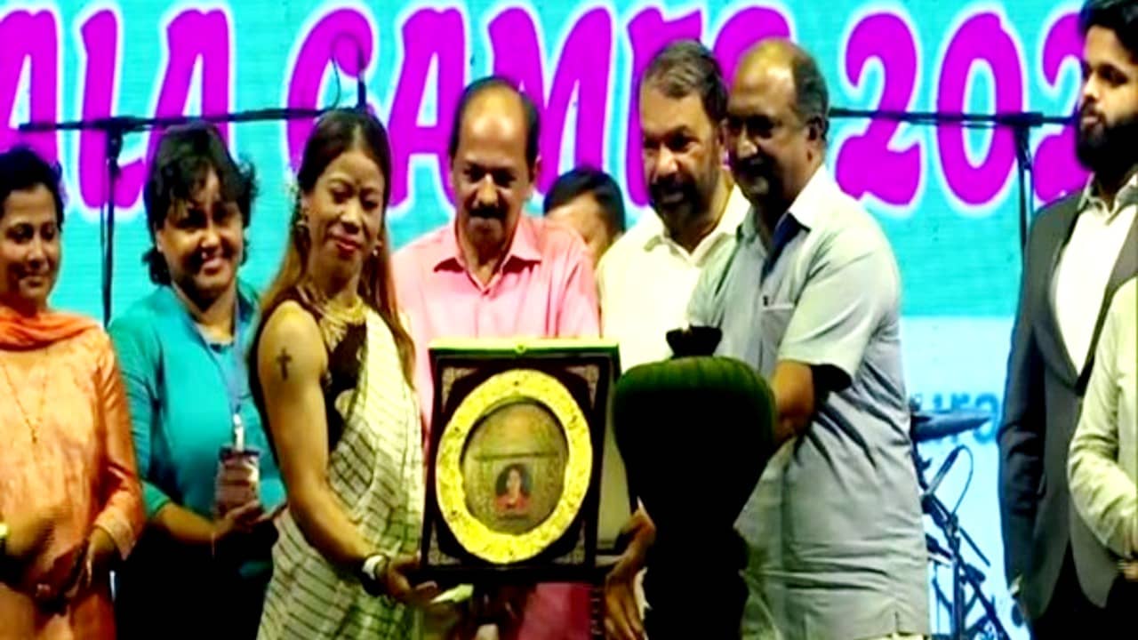 তিরুবনন্তপুরমে কেরালা গেমসের উদ্বোধনী অনুষ্ঠানে মেরিকে সম্মান জানিয়েছেন কেরালার অর্থমন্ত্রী কেএন বালাগোপাল। (ছবি-এএনআই টুইটার)