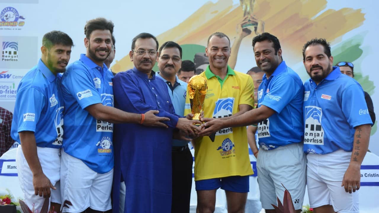 ব্রাজিলের বিশ্বকাপজয়ী অধিনায়কের বিরুদ্ধে খেললেন পুলিশ কমিশনার বিনীত গোয়েল, ক্রীড়া প্রতিমন্ত্রী মনোজ তিওয়ারি, অলিম্পিকে পদকজয়ী টেনিস তারকা লিয়েন্ডার পেজ, প্রাক্তন ফুটবলার আলভিটো ডি কুনহা, রহিম নবি। (ছবি : রাহুল সাধুখাঁ)