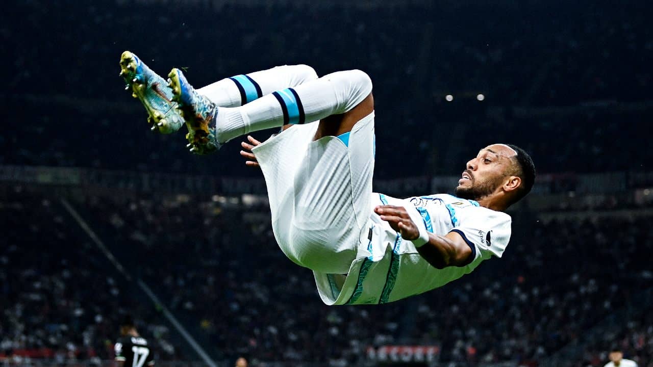 ম্যাচের ৩৪ মিনিটে মাউন্টের পাস থেকে ব্যবধান বাড়ান অবামেয়াং। (ছবি:টুইটার)