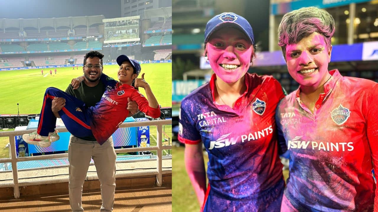 মঙ্গলবার ডব্লিউপিএলের ম্যাচ থাকায় রঙের উৎসবে সামিল হতে পারেনি দিল্লি ক্যাপিটালস। ইউপি ওয়ারিয়র্সের বিরুদ্ধে জয়ের পর দিল্লি শিবিরে ছড়াল রং। (ছবি:টুইটার)