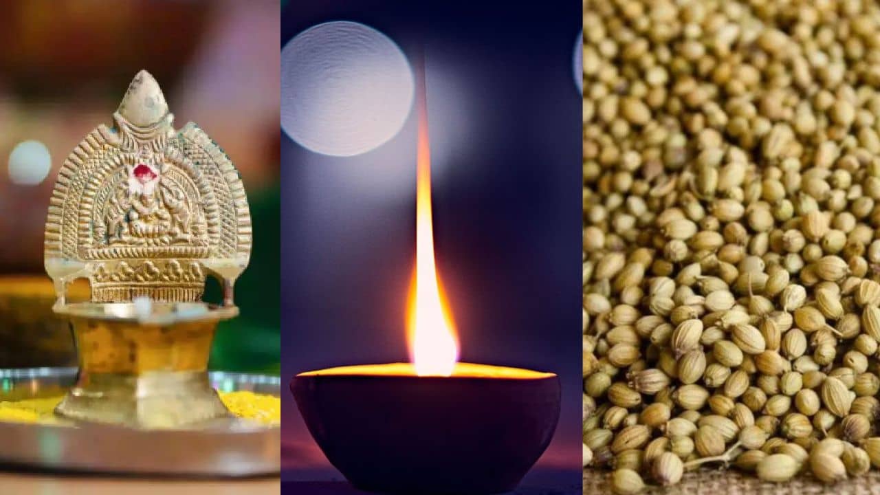 যদি ধনতেরাসের দিন কোনও সোনা ও রুপোর মতো দামি জিনিস কিনতে না পারেন তাহলে অবশ্যই গোটা ধনে বাড়িতে এনে রোপন করতে পারেন। বিশ্বাস করা হয় যে এর ফলে আপনার কোনও অর্থের অভাব হয় না। এছাড়া গোমতী চক্র কিনলে দেবী লক্ষ্মী আপনা হতেই প্রবেশ করেন।