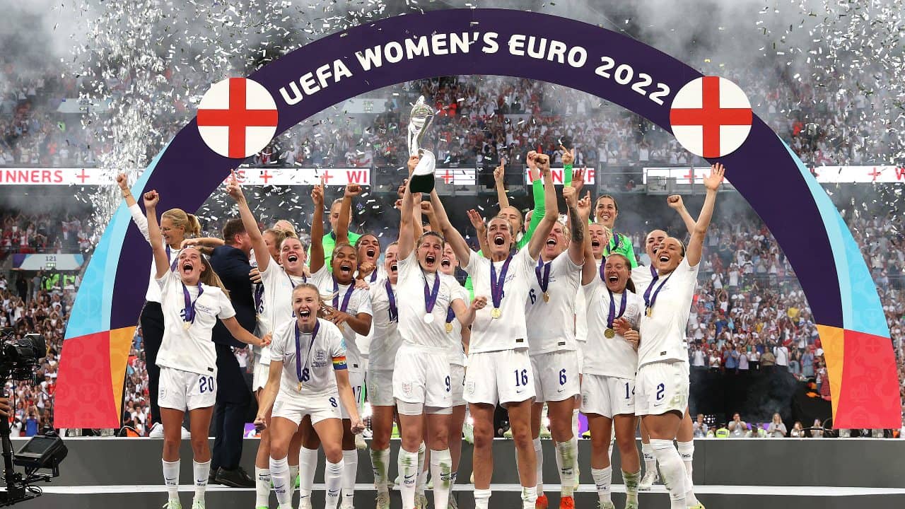 ওয়েম্বলি স্টেডিয়ামে মেয়েদের ইউরো কাপের ফাইনালের (UEFA Women's EURO Cup) হাইভোল্টেজ ম্যাচে মুখোমুখি হয়েছিল ইংল্যান্ড (England) ও জার্মানি (Germany)। আট বারের চ্যাম্পিয়ন জার্মানিকে ২-১ গোলে হারিয়ে এই প্রথম বার ট্রফির স্বাদ পেল ইংল্যান্ড। (ছবি-উয়েফা ওমেন্স ইউরো টুইটার)