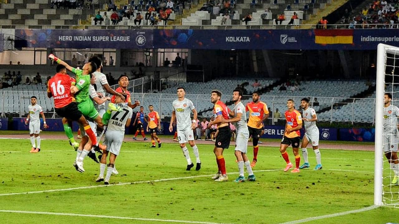 এফসি গোয়ার শেষ মুহূর্তের গোলে হার ইস্টবেঙ্গলের। বুধবার যুবভারতীতে ২-১ গোলে হারল লাল হলুদ। (ছবি: রাহুল সাধুখাঁ)