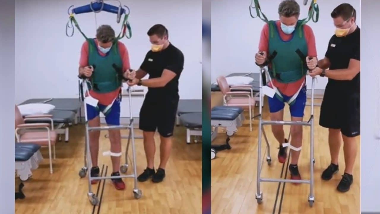 যন্ত্রে ভর করে ট্রেনারের সাহায্যে তিনি একটু একটু করে হাটাও শুরু করেছেন। তারই ঝলক তিনি শেয়ার করেছেন নিজের সোশ্যাল মিডিয়ায়।