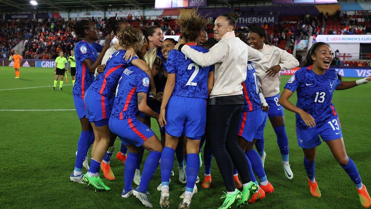 মেয়েদের ইউরো কাপের (UEFA Women's EURO Cup) সেমিফাইনালে জায়গা করে নেওয়া চতুর্থ দল হল ফ্রান্স (France)। গত বারের চ্যাম্পিয়ন নেদারল্যান্ডসকে (Netherlands) কোয়ার্টার ফাইনালে অতিরিক্ত সময়ের গোলে হারিয়ে দিল ফ্রান্স। (ছবি-উয়েফা ওমেন্স ইউরো ২০২২ টুইটার)