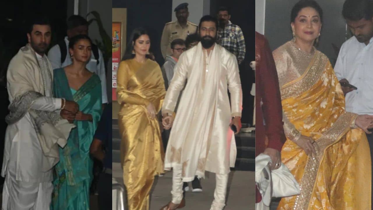 অযোধ্যায় এসে পৌঁছেছেন রণবীর কাপুর ও আলিয়া ভাটও। সাদা ধুতি-পাঞ্জাবীতে দেখা যায় রণবীরকে। সবুজ রঙের শাড়়ি পড়েছেন আলিয়া।