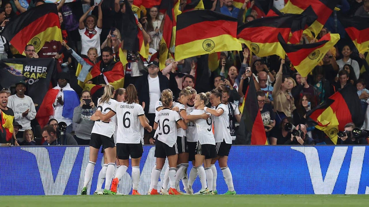 এ বার মেয়েদের ইউরো কাপের ফাইনালে ৩১ জুলাই জার্মানির প্রতিপক্ষ ইংল্যান্ড। টুর্নামেন্টের ফাইনাল হবে ওয়েম্বলি স্টেডিয়ামে। (ছবি-মেয়েদের ইউরো কাপ ২০২২ টুইটার)