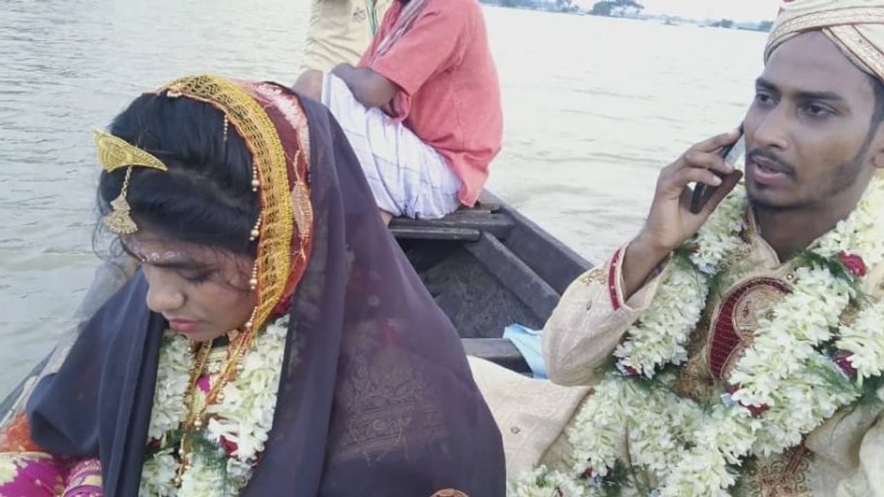 বিয়ের সব কিছুই আয়োজন সারা হয়ে গিয়েছিল। এই বন্যার জন্য বিয়ের অনুষ্ঠান বাতিল করে দিলে ভীষণ সমস্যার মধ্যে পড়ে যাবেন শ্বশুরবাড়ির লোকজন। তাই কোনওরকম জাঁকজমক না করে বিয়েটা সেরে নিতে জীবন বাজি রেখে বর চড়ে বসেন নৌকায়। বন্যার জলকে তোয়াক্কা না করেই তিনি হাজির হয়ে যান বিয়ের মণ্ডপে। তারপর কনেকে নিয়ে আবার নৌকায় করে ফিরে আসেন বাড়ি। বরের দাবি, এখন বন্যা, তার পর পরে যদি আবার করোনা সংক্রমণ বৃদ্ধি পায়, তাহলে আরও বিপদ। তখন তো আরও প্রশাসনিক বিধিনিষেধের গেরো চেপে বসবে। তাই বিয়েটা সেরে ফেলতে একটু রিস্ক নিতেই হল। বরের কীর্তিতে দারুণ খুশি নববধূ।