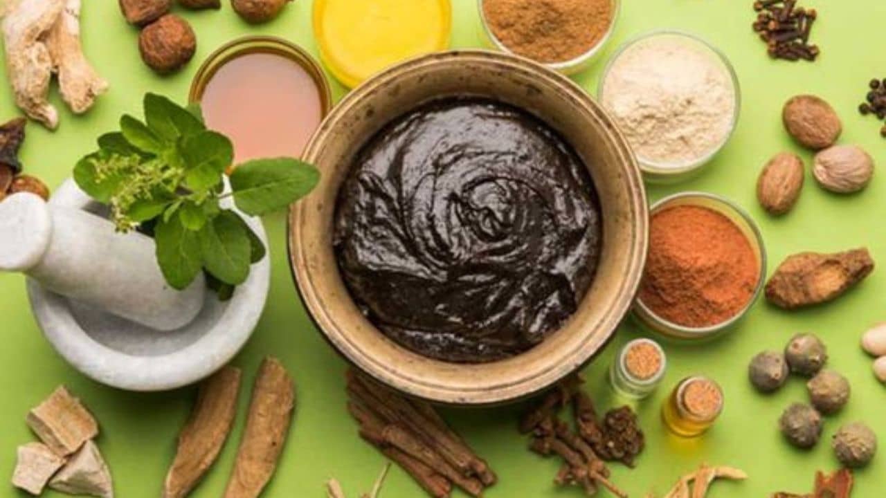 বাড়িতে চ্যাবনপ্রাশ বানাতে লাগবে আমলকি, ছোট এলাচ, গোলমরিচ, দারুচিনি, জিরা, মৌরি, ঘি, গুড়, মধু, জাফরান, কেশর,তেজপাতা, আদা, নাগকেশর, জায়ফল,কিশমিশ, শুকনো খেজুর, তিলের তেল, তুলসী, নিম, অশ্বগন্ধা, বাসক পাতা,যষ্টিমধু।(ছবি:Pinterest)