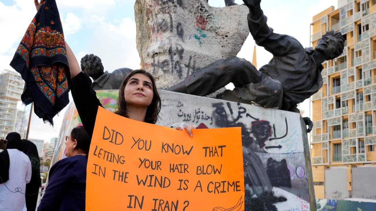 আপনি কি জানেন ইরানে হাওয়ায় চুল ওড়ানো এক গর্হিত অপরাধ? হ্য়াঁ! এই উক্তি দেওয়া পোস্টার হাতেই ইরানের রাজপথে বিক্ষোভে সামিল হয়েছেন হাজার হাজার ইরানের নাগরিক। ইরানে কঠোর পোশাকবিধি রয়েছে। সেখানে মুসলিম মহিলাদের হিজাব পরায় বাধ্যবাধকতা রয়েছে। অন্যথায় কঠোর শাস্তির মুখোমুখিও হতে পারেন তাঁরা। কয়েক সপ্তাহ আগে ইরানের প্রেসিডেন্ট ইব্রাহিম রইসি এই বিষয়ে কড়া নির্দেশিকা দিয়েছিলেন। (ছবি সৌজন্যে : AP)