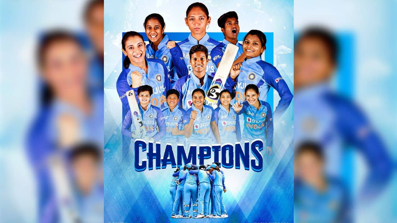 সপ্তম এশিয়া কাপ ভারতে নিয়ে এলেন হরমনপ্রীত কৌররা। সিলেটে এ বার আয়োজিত হয়েছিল মহিলাদের এশিয়া কাপ (Women’s Asia Cup 2022)। টুর্নামেন্টের অষ্টম সংস্করণ ছিল এটি। ফাইনালে চামারি আতাপাত্তুর শ্রীলঙ্কাকে ৮ উইকেটে হারালেন স্মৃতিরা। (Pic Courtesy- ACC Media)