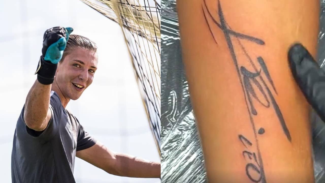 মেসির অটোগ্রাফের উল্কি করে দেওয়ার আবদার নিয়ে পৌঁছে যান ট্যাটু পার্লারে। মোবাইলে তুলে রাখা ছবি দেখে ট্যাটু আর্টিস্ট হুবহু মেসির অটোগ্রাফ বানিয়ে দিলেন। গোলরক্ষকও বেজায় খুশি। (ছবি:টুইটার)