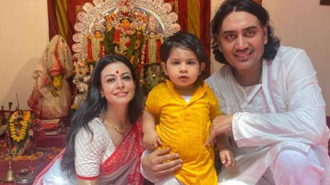 লাল পড়া সাদা শাড়ি পরেছেন কোয়েল। শাঁখা, পলা, সোনার গয়না, লাল টিপে একেবারে বাঙালি সাজ। পাশে রয়েছেন স্বামী নিসপাল সিং রানেও। কিন্তু এ দিনের মূল আকর্ষণ দম্পতির ছেলে কবীর।