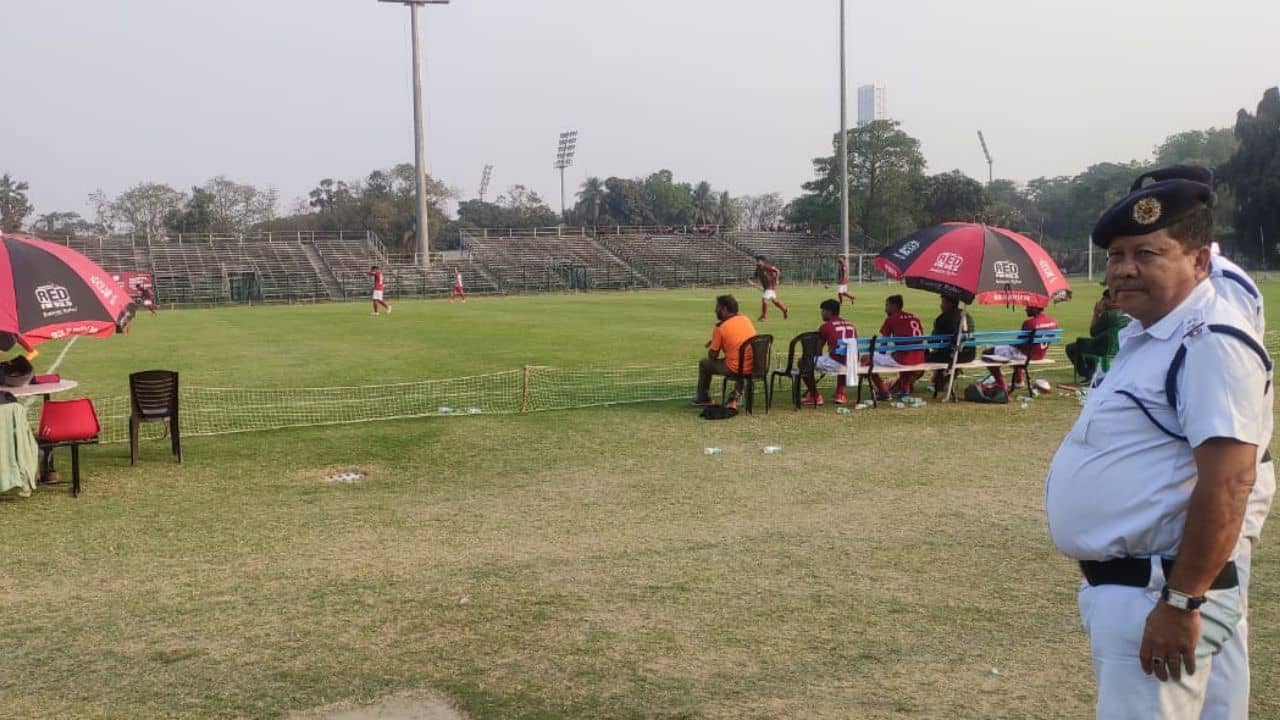 বাকি অন্য়ান্য় ম্য়াচেও পুলিশ পাহারায় ম্যাচ করার অনুরোধ জানান বাংলা হকি সংস্থার কাছে। এ দিন পুলিশের পাহারায় হকি ম্যাচ আয়োজিত হল মোহনবাগান মাঠে। (ছবি: নিজস্ব)