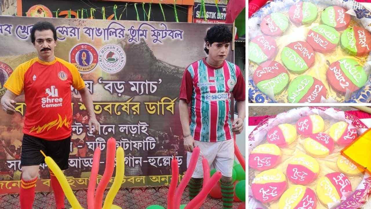 কোথাও আবার থালাভর্তি লাল-হলুদ ও সবুজ-মেরুন মিস্টি। দুই দলের সমর্থকরাই ডার্বির পাশাপাশি মিস্টিসুখ উপভোগ করতে পারবেন।