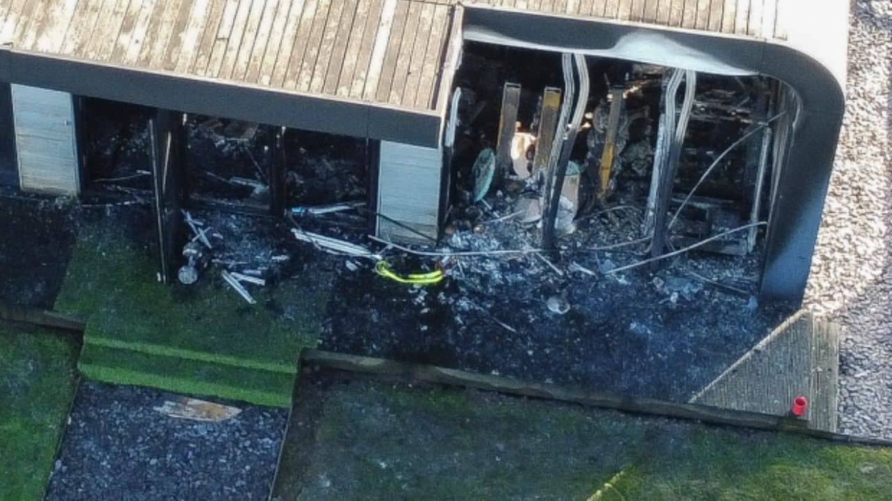 বিধ্বংসী আগুনে পুড়ে ছাই হয়ে গিয়েছে জিম সহ বাড়ির কিছু অংশ। ছবি: টুইটার