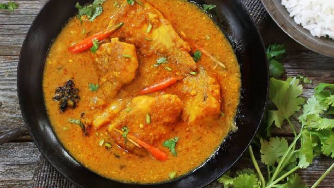 এবার এর মধ্যে একটু হলুদ, জিরে গুঁড়ো, ধনে গুঁড়ো, স্বাদমত নুন-চিনি দিয়ে জল দিয়ে কষাতে থাকুন। মাছ আগে থেকে ভেজে রাখুন। এবার ঝোল ফুটে উঠলে মাছ ছেড়ে দিন। এই ঝোল কিন্তু একদম গরম গরম খেতে হবে।