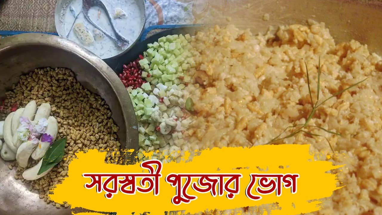 সরস্বতী পুজোর দিন ভোগে খিচুড়ি থাকবেই। খিচুড়ি, বাঁধাকপির তরকারি, আলুর দম, টমেটোর চাটনি, পায়েস এসব মেনুতে থাকেই। এছাড়াও এই পুজোর দিনে বিশেষ আকর্ষণ হল চিঁড়ে মাখা। চিঁড়ে, ফল,দই, সন্দেশ দিয়ে মেখে খেতে লাগে বেশ