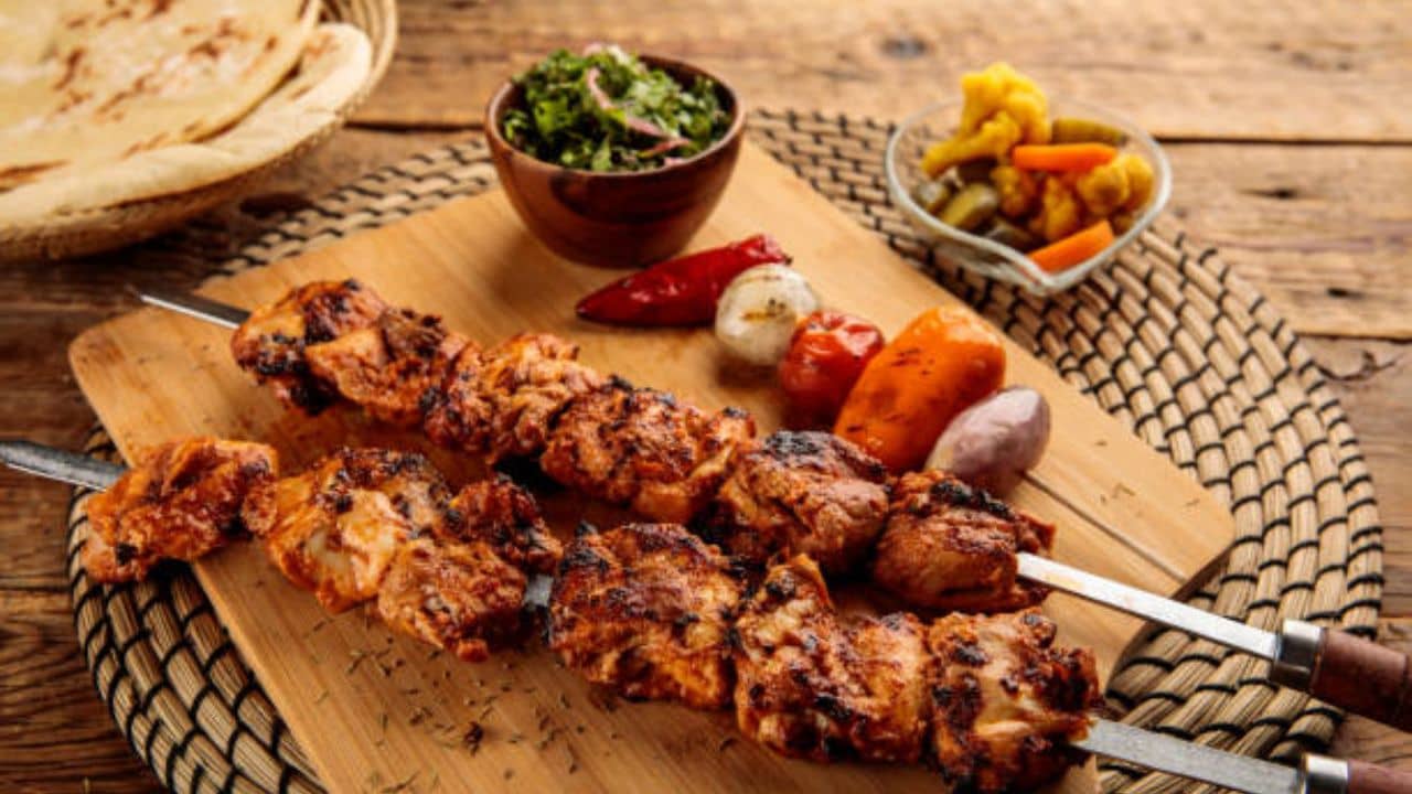 এবার একটা শুকের মধ্যে চিকেন গেঁথে নিন। গ্যাসে তাওয়া বসান। এবার একটা তাওয়াতে তেল বুলিয়ে চিকেন গুলো সেঁকতে দিন। এবার তাওয়া নামিয়ে কাবাবের মধ্যে ঘি লাগিয়ে সোজা গ্যাসে সেঁকে নিন। এতে দারুণ দেখতে আর খেতে হবে।