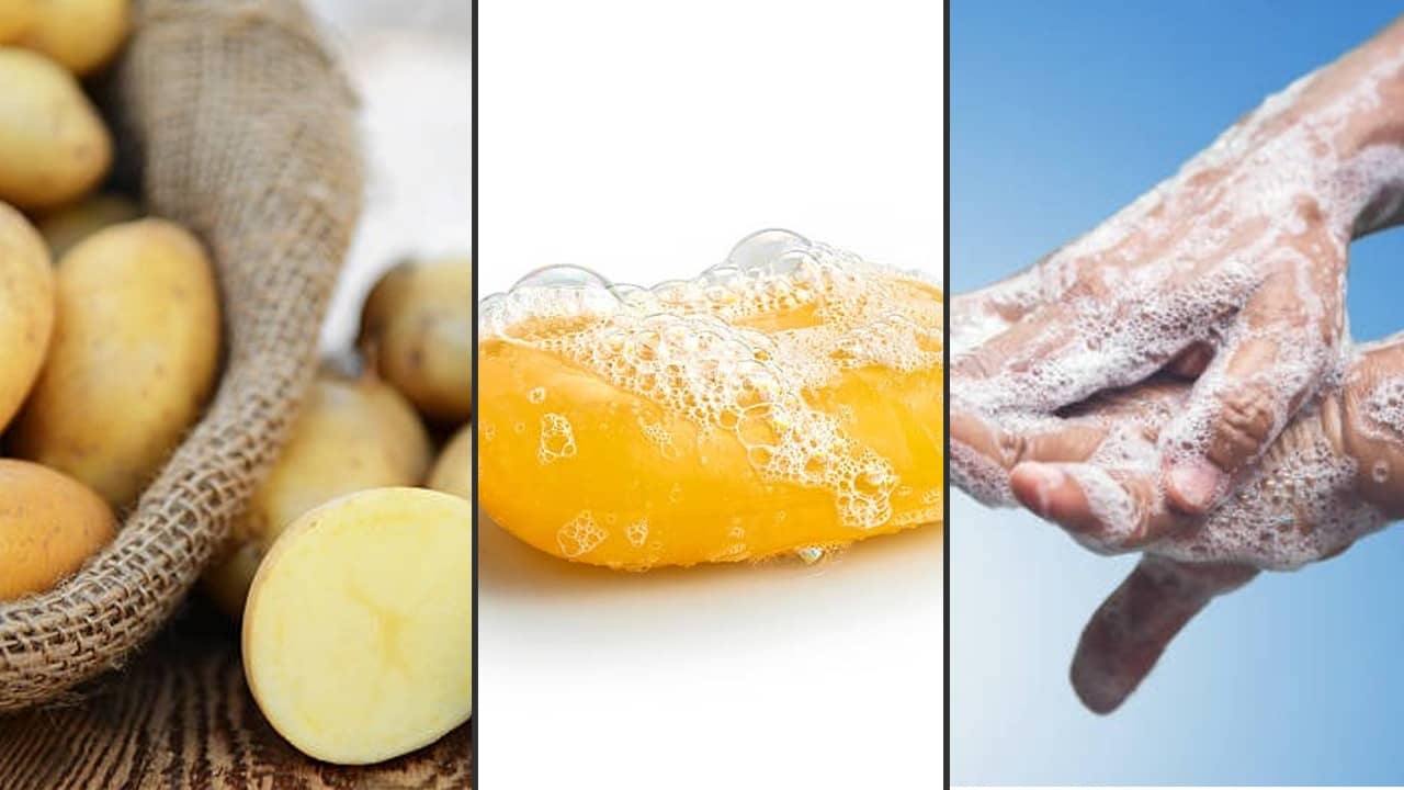 স্নানের জন্য যে সাবান ব্যবহার করেন তার থেকে বড় একচামচ মত পরিমাণ সাবান গ্রেটারে ভাল করে গ্রেট করে নিতে হবে। আলু দু টুকরো করে তাও গ্রেটারে ঘষে নিতে হবে।
