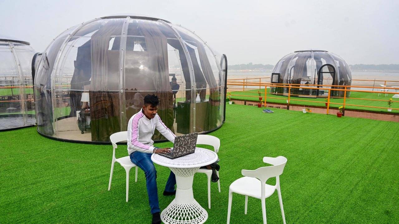 পাশাপাশি কাঠের তৈরি ছোট বাড়িও রয়েছে। যার ভাড়া প্রতি রাতে ৪১-৬১ হাজার। ভাড়া বেশি হলেও এর বুকিংয়ের জন্য হুড়োহুড়ি শুরু হয়ে গিয়েছে। কুম্ভমেলায় সব মিলিয়ে ৪৪টি ডোম মিলিয়ে একটা ছোট্ট শহরের মতো তৈরি হয়েছে। সঙ্গে কাঠের ছোট বাড়ি থাকছে প্রায় ২৫০টি। সব ছবি: PTI/ TV9 NETWORK