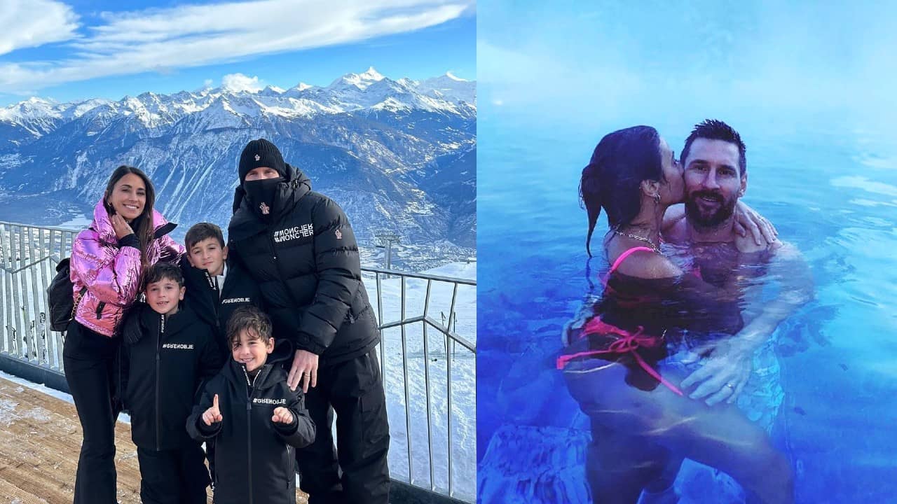 বরফের দেশ বলে পুলের জলে ঝাঁপাতে আপত্তি নেই মেসি ও তাঁর পরিবারের। (ছবি:ইনস্টাগ্রাম)